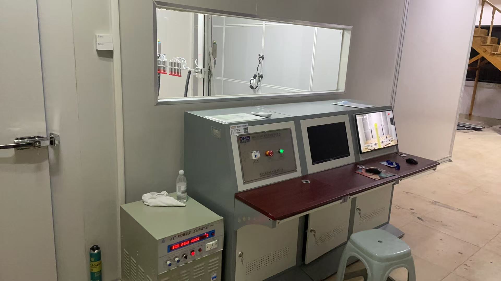 11、试验房体采用100mm聚氨酯冷库板,房间6000米长方向装有1块活动墙板,两边装有滑轨。当测量小于或等于400mm扇叶直径的风扇时,只需推动活动墙到4500mm位置,当测量大于400mm扇叶直径的风扇时,推动活动墙到6000mm位置。