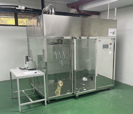 气雾试验舱安装采样接口不少于6个,阀门采用304及以上不锈钢球阀,内外接口采用快速接口连接采样管或气溶胶发生器管。气雾试验舱安装手套孔不少于2个,手套材质为硅橡胶或更优材质,长度为600mm以上。