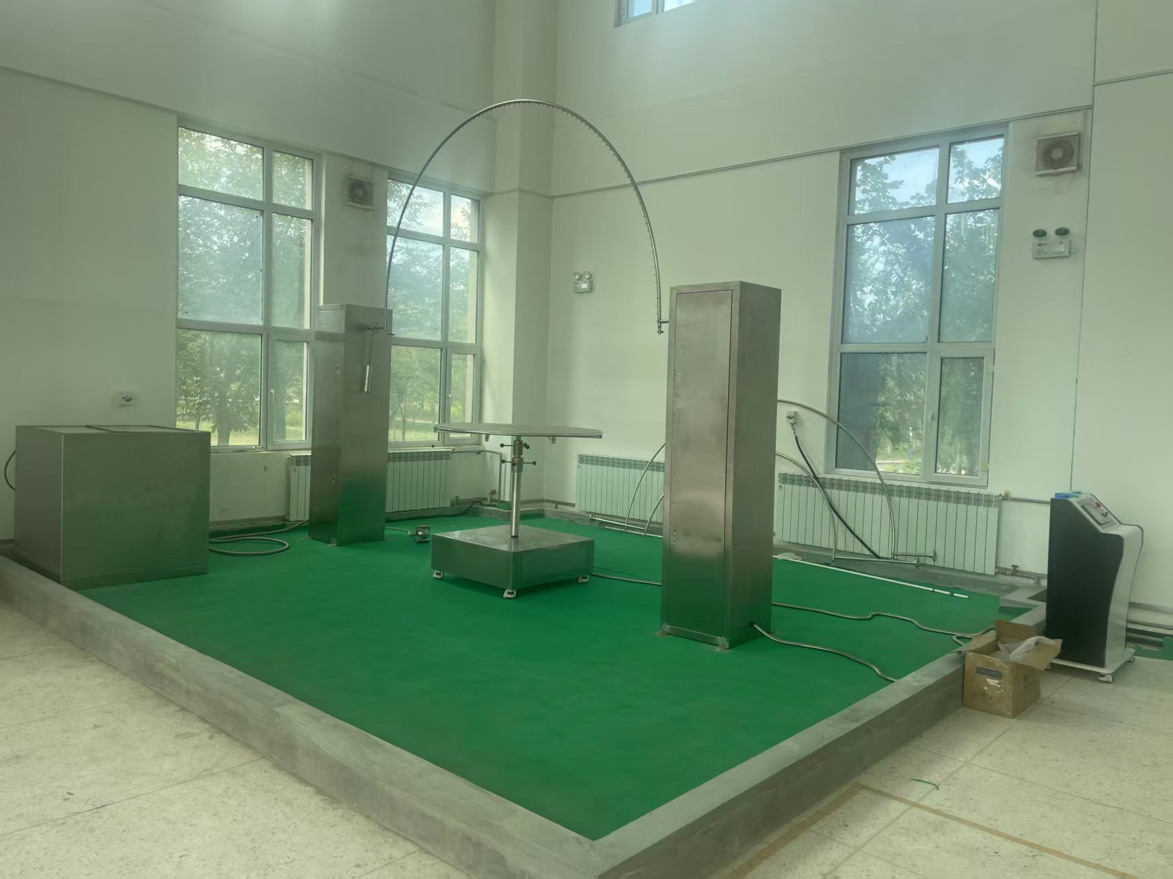 无人机防水性实验装置用于在使用过程中可能会受到雨水喷淋的民用轻小型无人机系统,以此确定民用轻小型无人机系统是否能经受住喷洒或滴落到其表面上的雨水环境的影响。