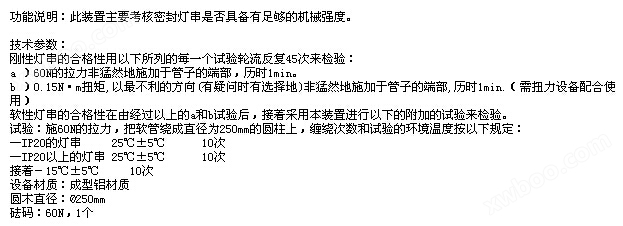 灯串缠绕试验装置功能说明:此装置主要考核密封灯串是否具备有足够的机械强度。灯串缠绕试验装置