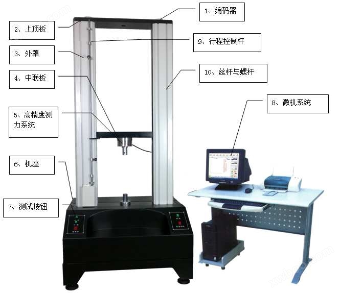 功能用途:用于金属、非金属、纤维、无纺布、塑料、木材、纸张、橡胶及新型复合材料的拉伸、压缩、弯曲力学性能测试。可根据GB、JIS、ASTM、DIN、ISO等标准自动求取:大试验力、断裂力、上(下)屈服点、断裂强度、屈服强度、弯曲强度、伸长率、定伸长应力、定应力伸长、弹性模量等参数,并打印出试验报告和曲线。