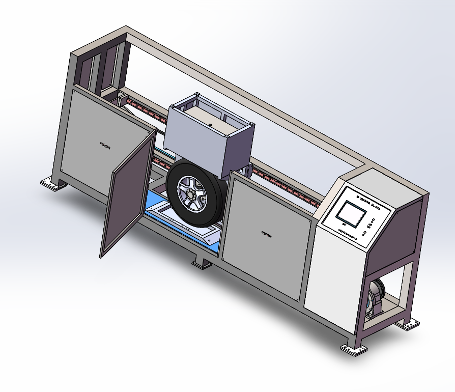 并装有限位保护,另一组驱动装置带动碾压机构实现前后碾压动作,主要部件以不锈钢和铝件制成。(保证轮胎是在正常滚动的情况下碾压样品)