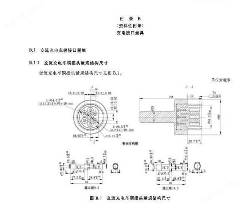B.1 交流充电车辆接口量规