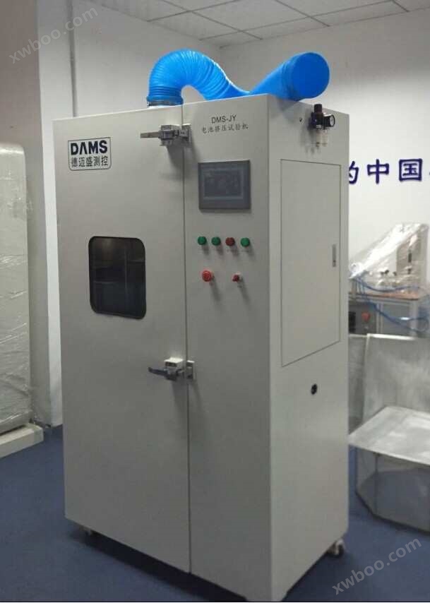 用于镍氢电池、锂电池的单体、模块、电池组等各种类型汽车动力用途电池的挤压试验 。本试验机依据QC/T 743-2006《电动汽车用锂离子蓄电池》QC/T 744-2006《电动汽车用金属氢化物镍蓄电池》模拟各类动力锂电池级在使用过程中,电池遭受挤压的情形,人工呈现电池在遭受挤压时可能出现的不同状况。将电池放在连个挤压板之间,液压油缸将压力施加到被挤压电池上,使电池的内部短路,当电池两极之间的电压下降到零或者接近零时自动回位。或者压力使电池变形到原尺寸的85%停留一段时间,然后再压到电池原始尺寸的50%,而后回位。两种模式试验完成以后根据标准判断电池不起火、不爆炸为合格。