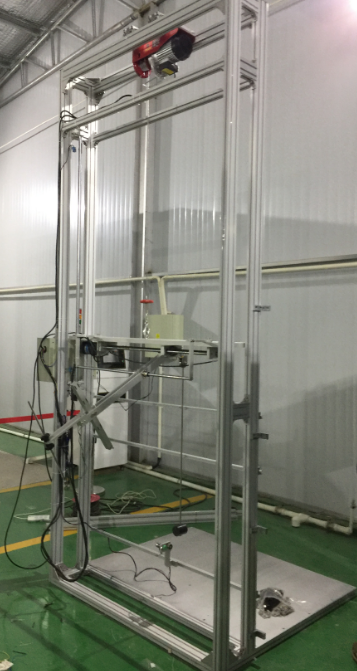 撞击系统的尺寸(设备主体,不包括设备安装支架):长×宽×高=1000mm×1500mm×3800mm(具体依据实际情况,需能完全满足所有常见低压成套开关设备试品的试验需要)