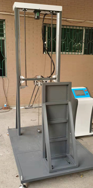 将摆动部件提到60°±1°释放位置释放,摆幅小于60°的按最大摆幅位置,撞击测试块。