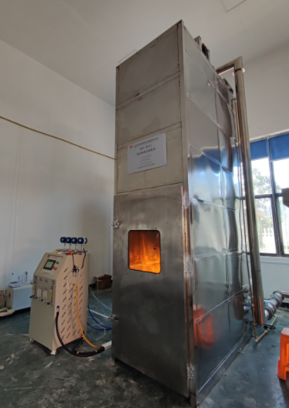 应在试验箱顶部的后面开一个(300士30)mmX(1000士100)mm的出气口。试验箱的后墙和两侧墙应采用传热系数约为0.7W·m-2 ·K-1的热绝缘。例如,在(1.5~2.0)mm厚的钢板上包覆65mm厚的矿物纤维再外包一适当的外套即可(见图2)。钢梯与试验箱后墙之间的距离为(150士10)mm,钢梯最下面的横档距地面(400±5)mm。电缆试样的zui低处距地面约100mm(见图3)。