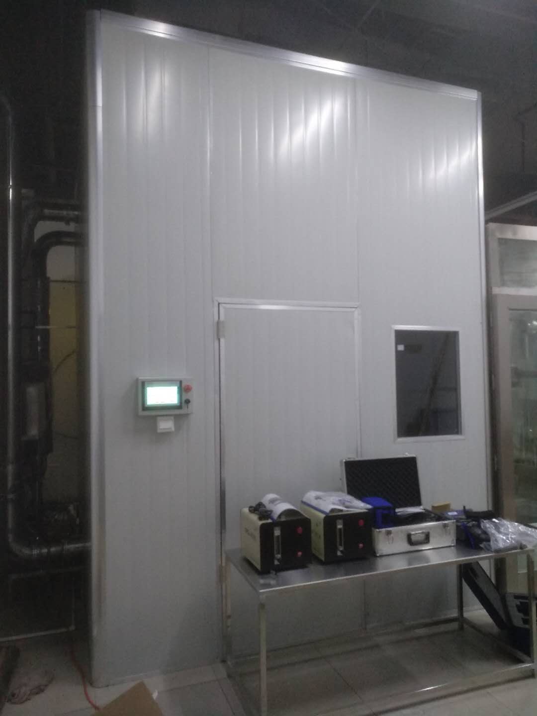 在一个密闭的房间内进行试验,房间的尺寸为:2.5m×3.5m×3.0m,墙壁表面覆盖聚乙烯板,空气净化器按照说明书要求放置。在桌面上使用的空气净化器放置在离地板高约750mm的房间中yang。